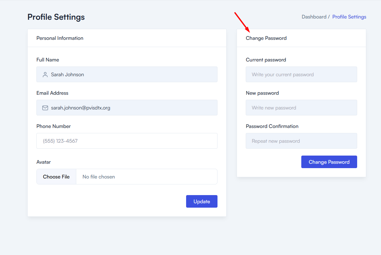 Save your changes and wait for the confirmation message indicating your password has been updated.